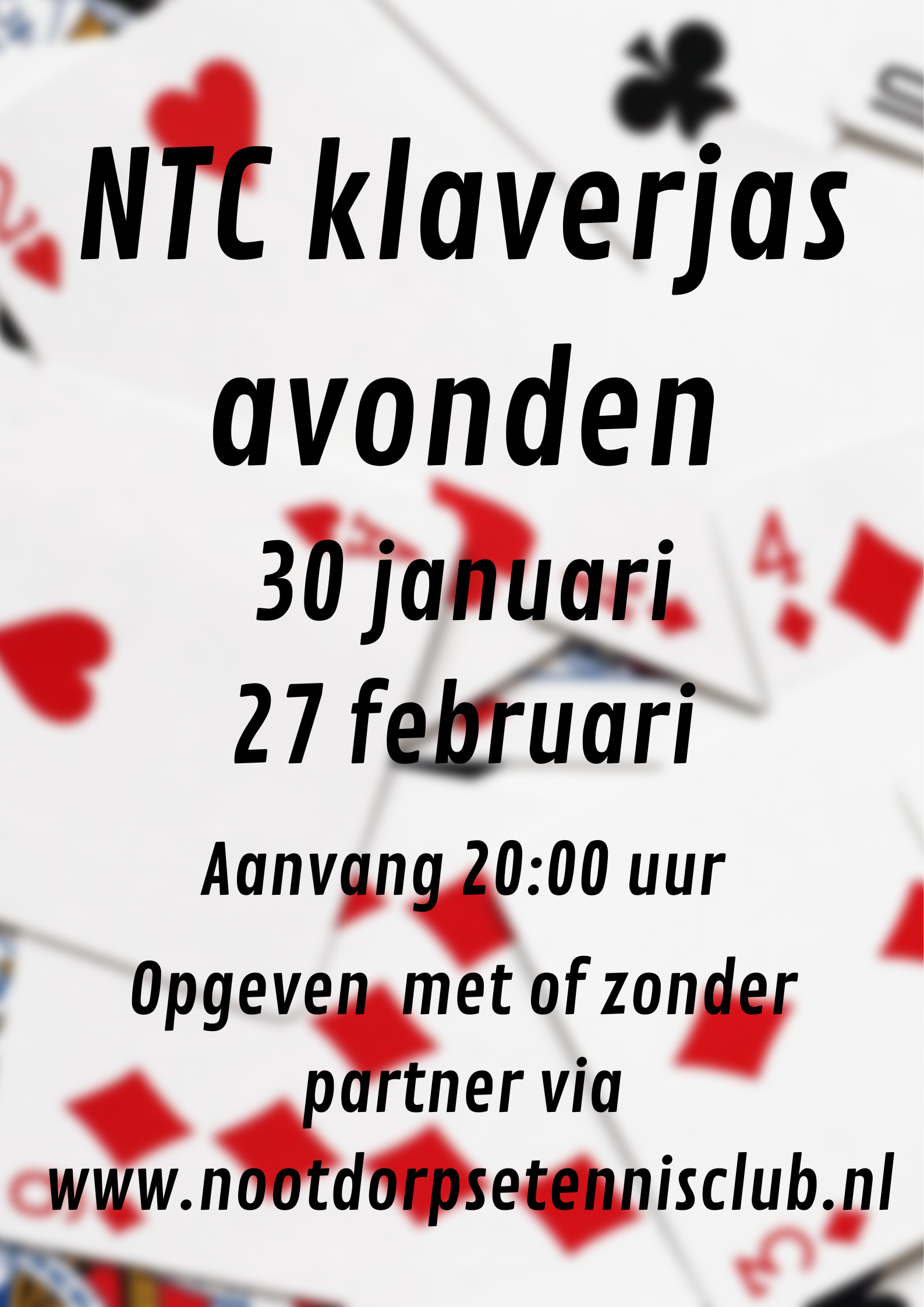 Regelmatig wordt in het clubhuis van de NTC klaverjas gespeeld. Dit zijn altijd heel gezellige avonden.