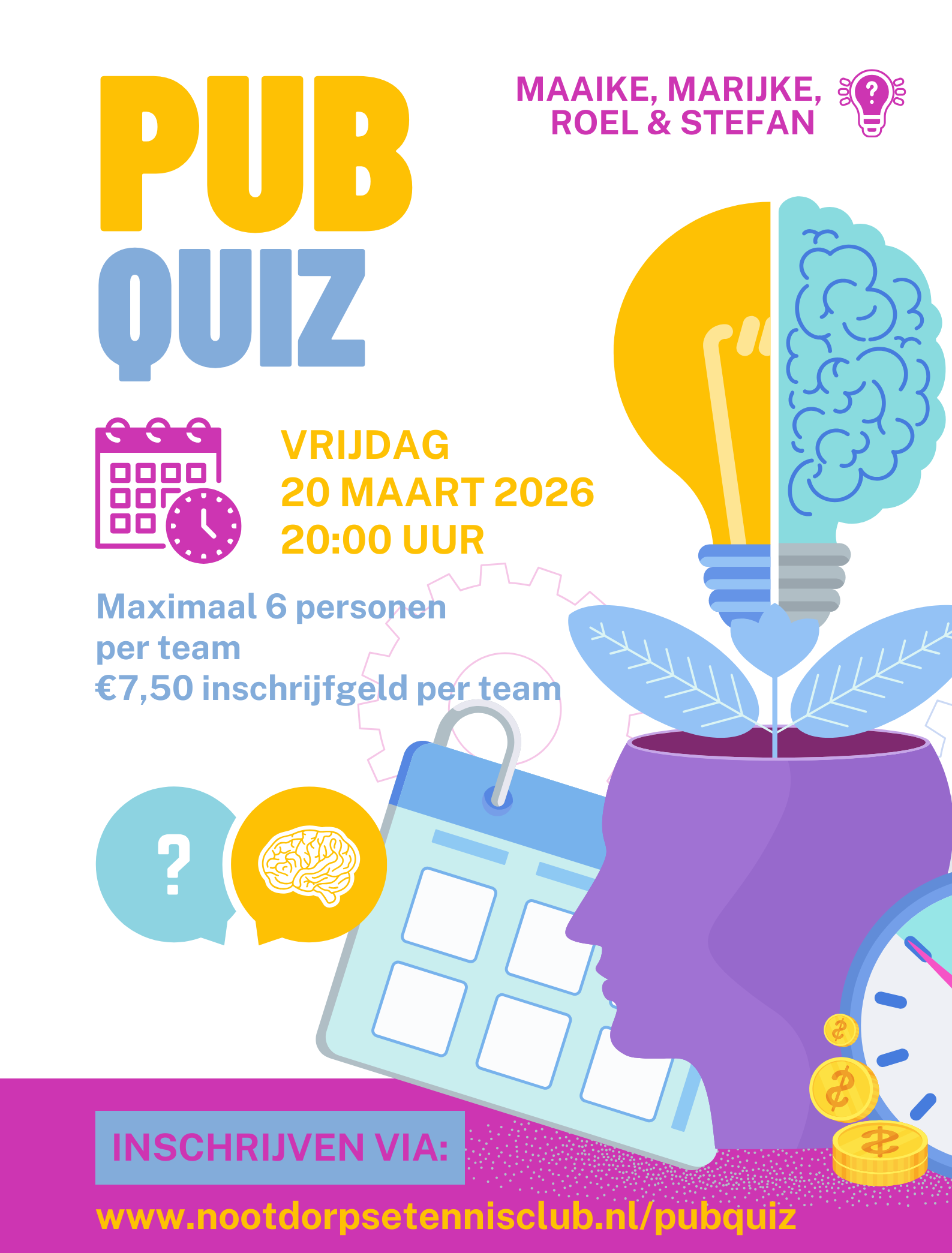 We organiseren weer een pubquiz op vrijdag 20 maart 2026 en we beginnen om 20:00 uur.
